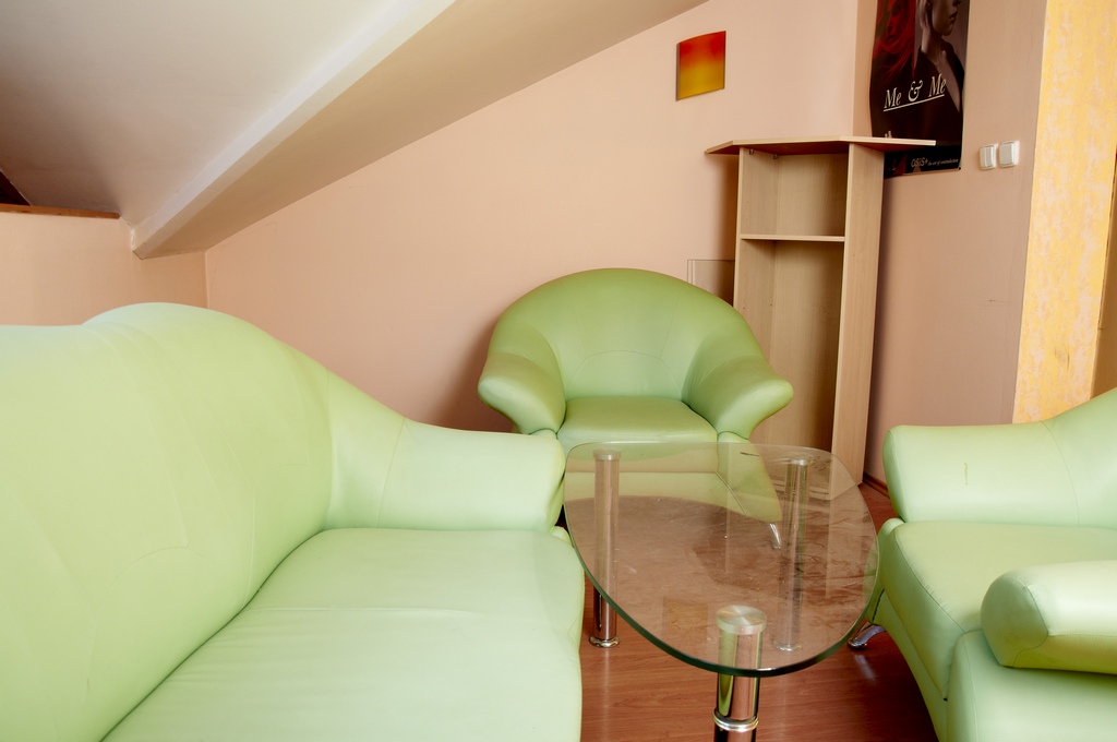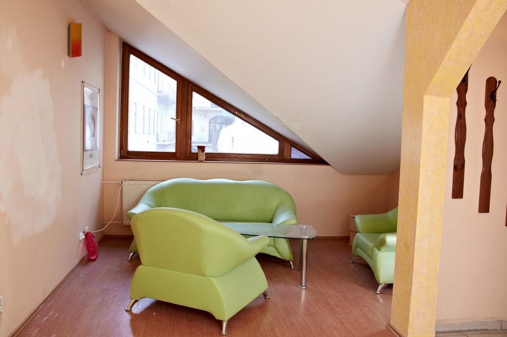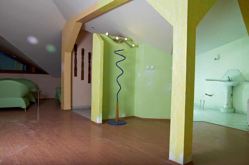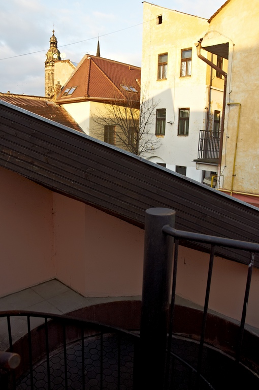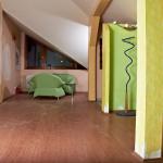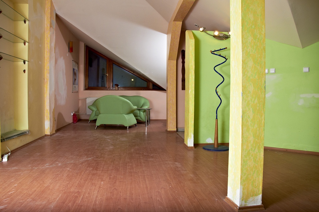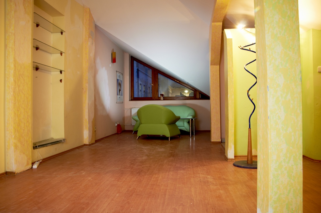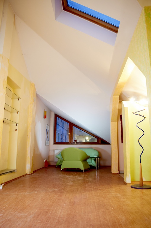 Priestor so samostatným vstupom cez točité schodisko, vlastná menšia terasa orientovaná na juhovýchod s výhľadom na Dóm. Za vstupným zádverím jedna veľká miestnosť, kuchyňa, kúpeľňa, WC. Plávajúca podlaha a dlažby.